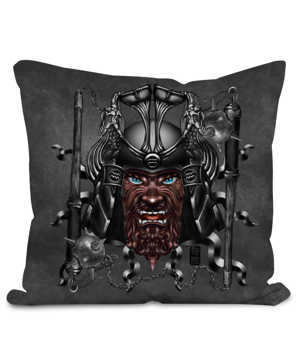 This throw cushion is part of our zodiac Samurai home décor collection. The design is printed on front and back of the pillow and available in 2 colors and 2 sizes. Featuring design of Aquarius zodiac with Brown mask. This Samurai cushion is sure to make your space awesome.