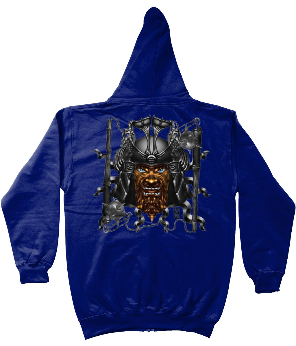 This hoodie with zipper is part of our zodiac Samurai clothing collection, featuring back printed design of Aquarius zodiac with Orange mask in Japanese Samurai art style. This zipper hoodie is made to order and available in multiple colors for your convenience.