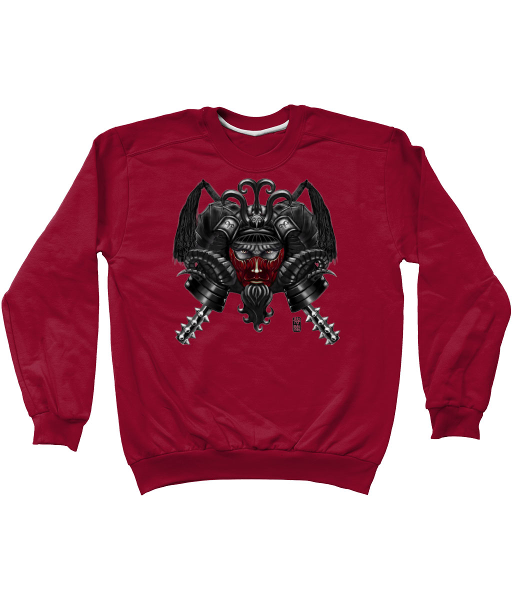 This Sweatshirt is part of our zodiac Samurai clothing collection, featuring Drop Shoulder Sweatshirt design of Aries zodiac with Red mask in Japanese Samurai art style. The Aries sweatshirt is made to order and available in multiple colors for your convenience.