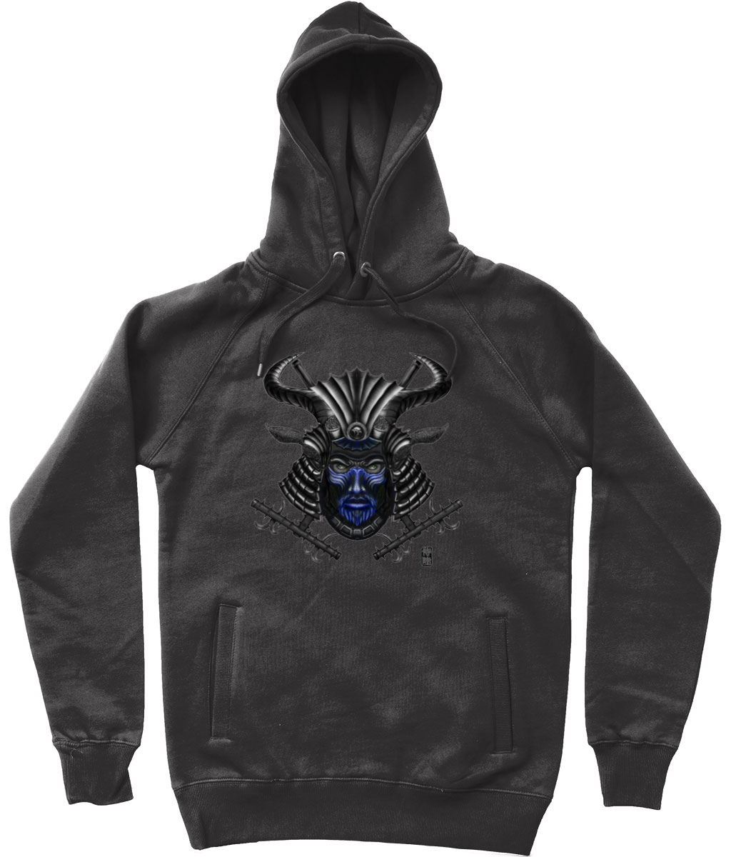 This Unisex pullover Hoodie is part of our zodiac Samurai clothing collection. The hoodie has side pockets for utmost convenience. Featuring design of Capricorn zodiac with Blue mask. This Samurai Hoodie is made to order and available in multiple colors for your convenience.