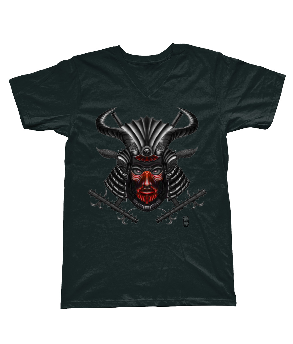 Capricorn with Red Mask – V Neck Samurai T-Shirt