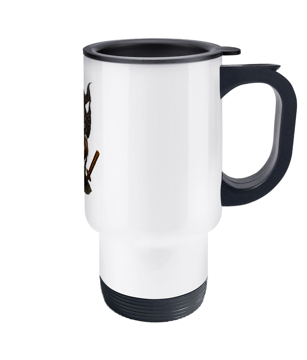 Material: 14oz stainless steel travel mug.