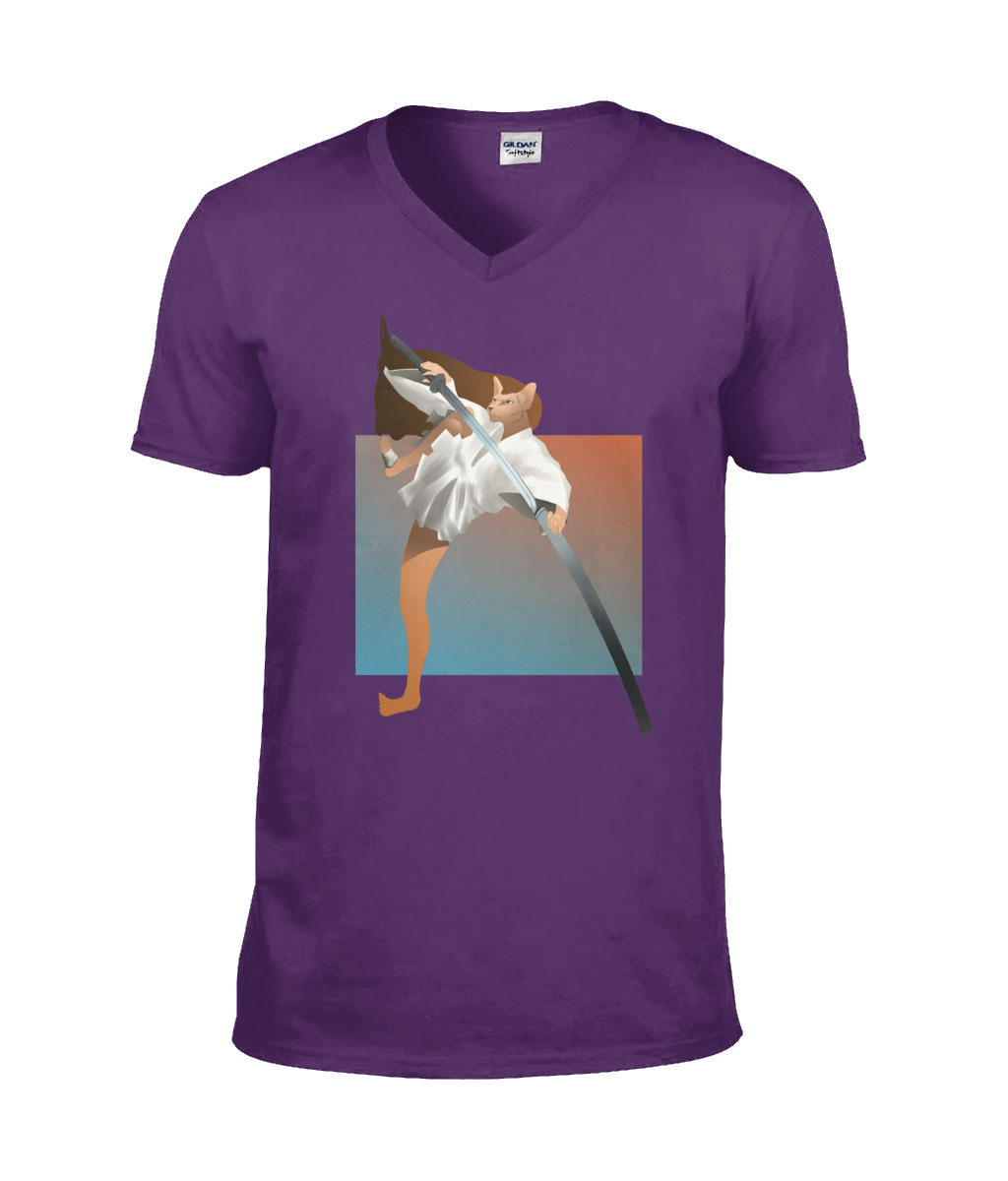 This bold, stylish cat samurai T-Shirt is made 100% of Combed Ringspun Cotton one of the best kinds of cotton used worldwide for high-quality clothing. It offers superior breathability for a sweat-free day, ultrasoft comfort for a silky-smooth feeling, and armor-like durability to last longer.