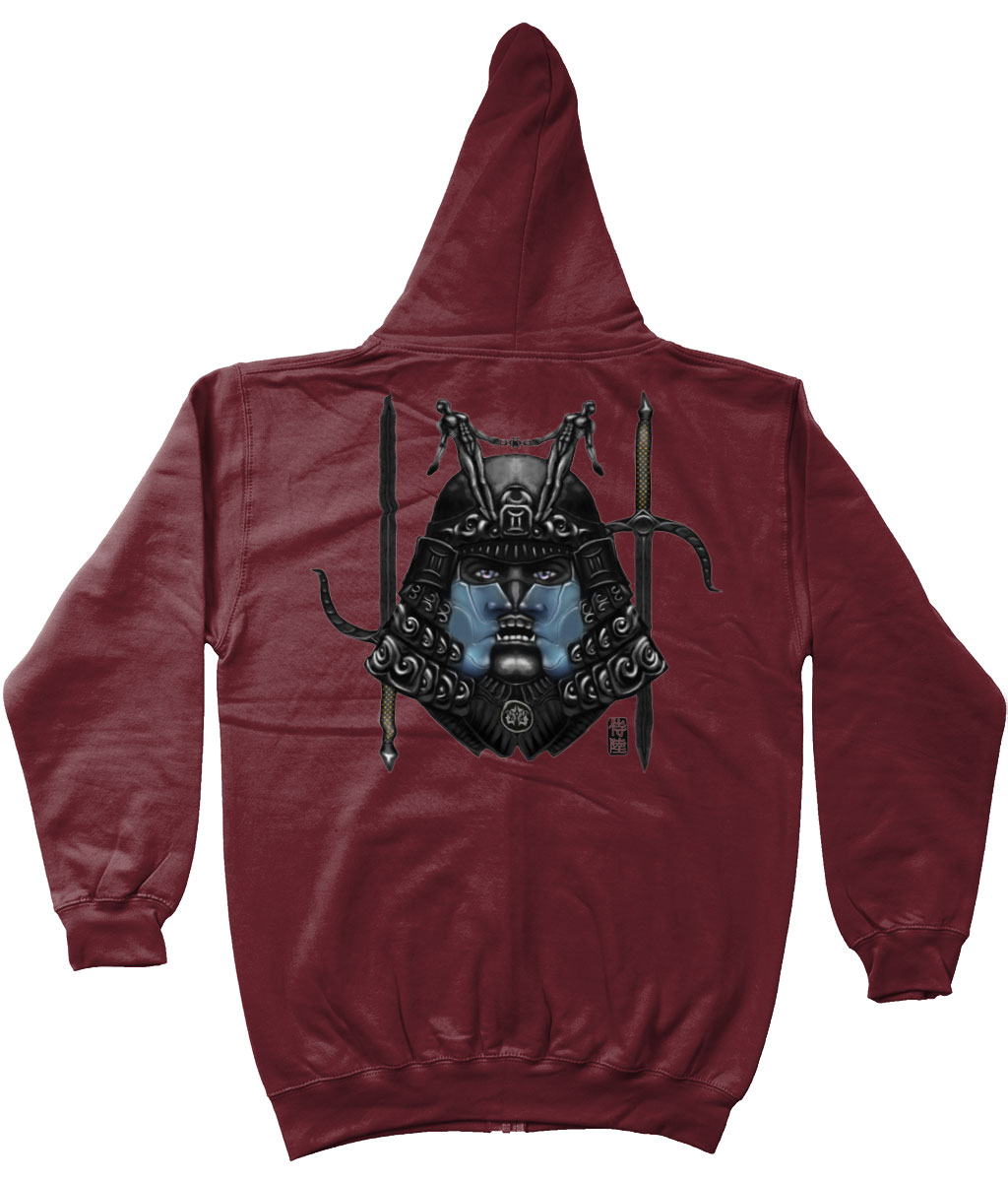 This hoodie with zipper is part of our zodiac Samurai clothing collection, featuring back printed design of Gemini zodiac with Blue mask in Japanese Samurai art style. This zipper hoodie is made to order and available in multiple colors for your convenience.
