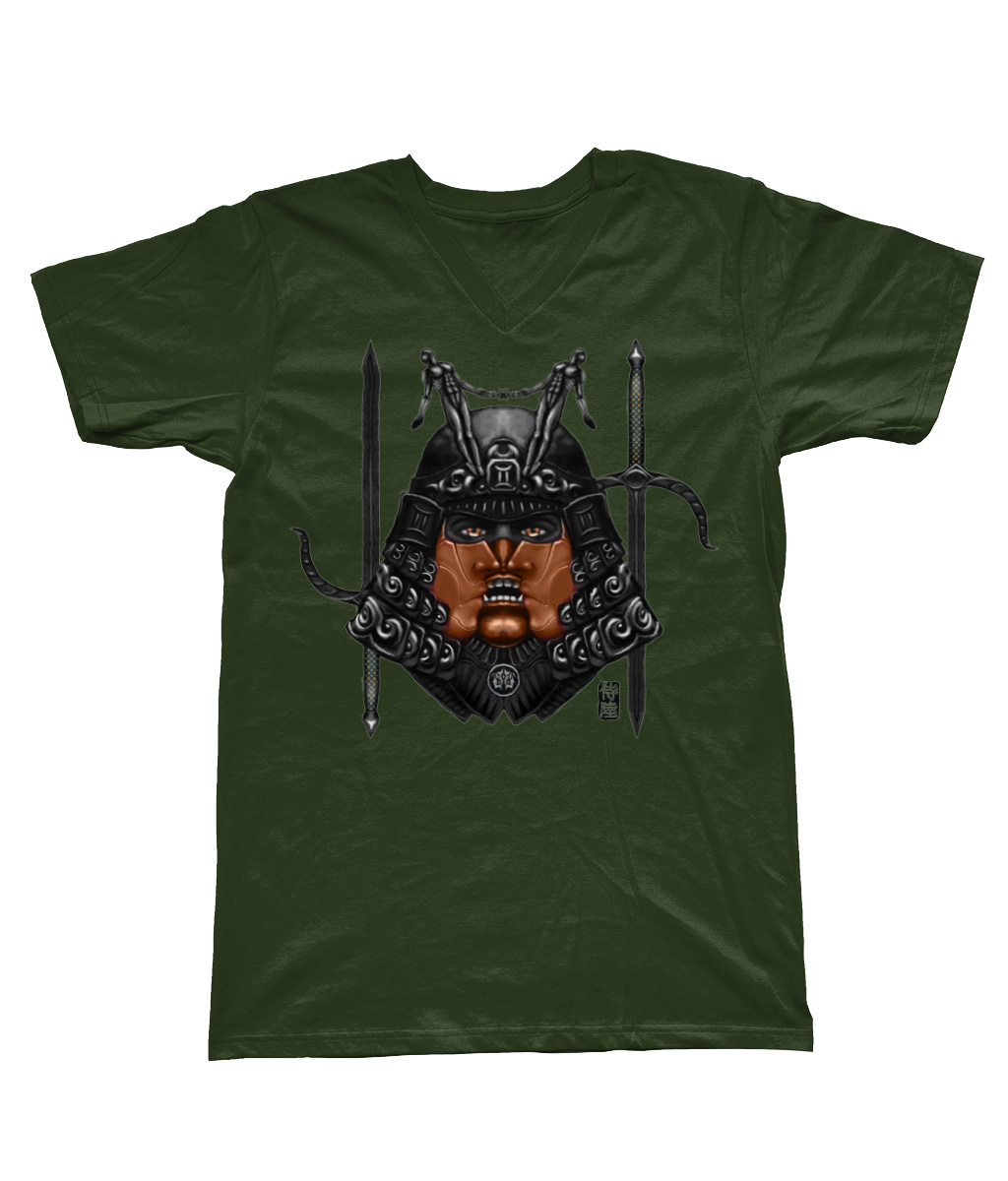 Gemini with Brown Mask – V Neck Samurai T-Shirt