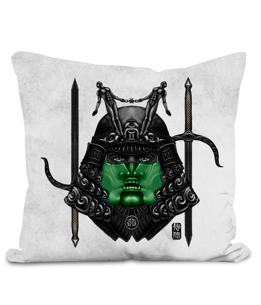 This throw cushion is part of our zodiac Samurai home décor collection. The design is printed on front and back of the pillow and available in 2 colors and 2 sizes. Featuring design of Gemini zodiac with Green mask. This Samurai cushion is sure to make your space awesome.
