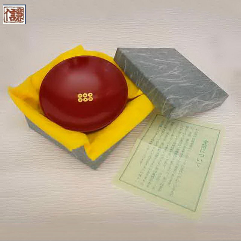 The surface has a lacquer paint coating while the inner part of the Roku Mon Sen has golden decors in gold leaf. Its base is made from natural wood and comes with a box and yellowish cloth. It measures 110 x 38 millimeters (D x H), and weighs a total of 45 grams.