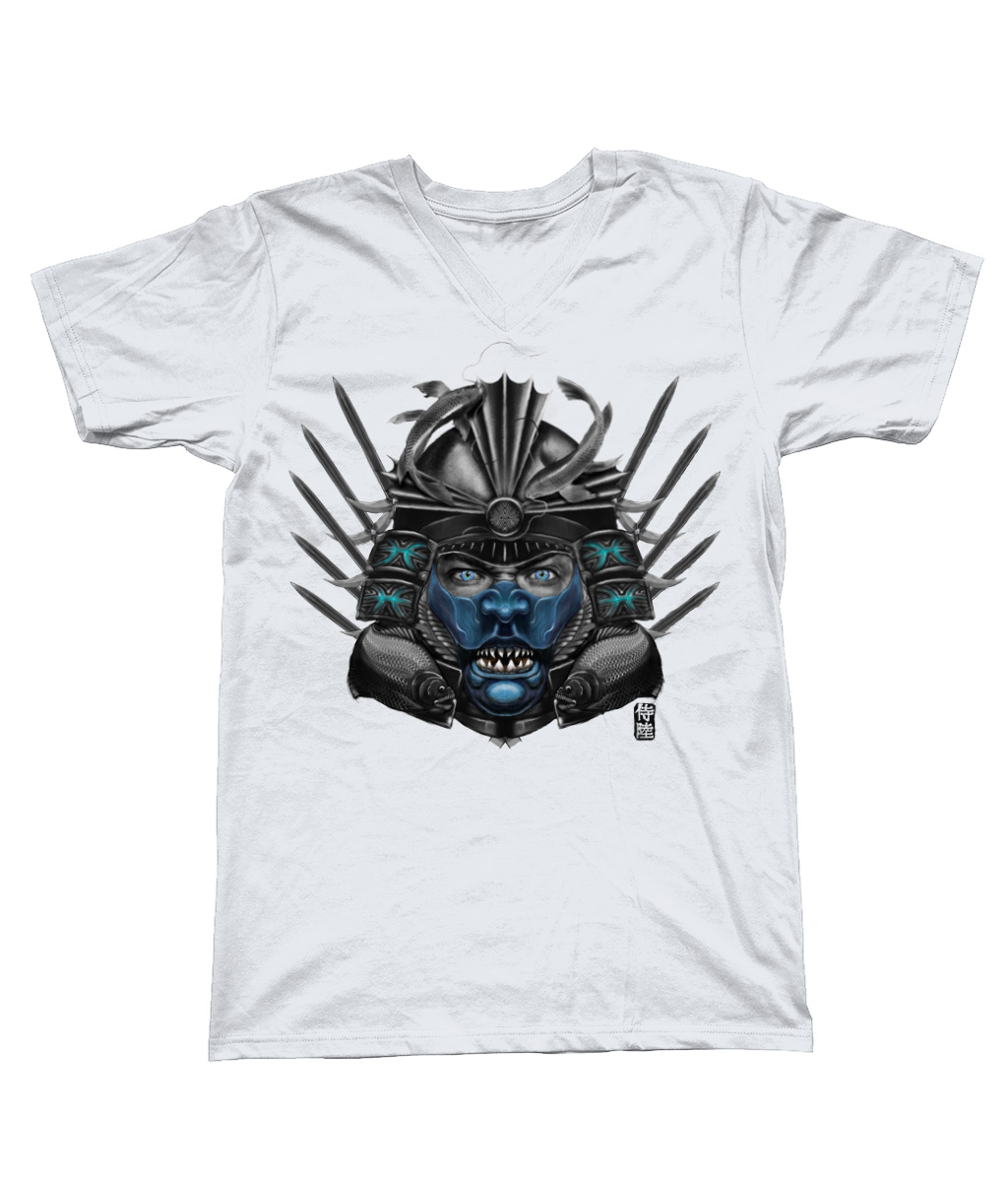 Pisces with Blue Mask – V Neck Samurai T-Shirt