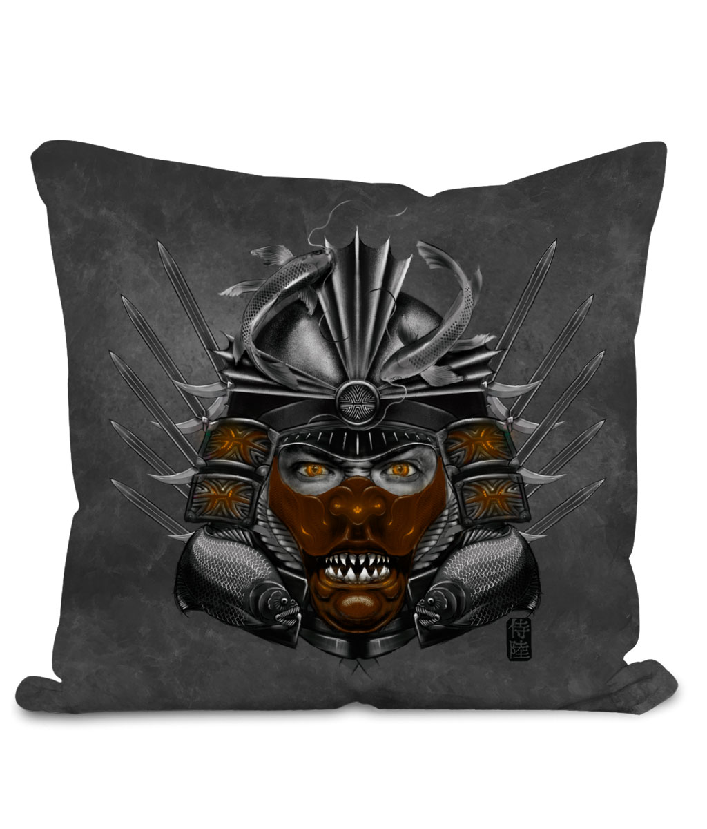 This throw cushion is part of our zodiac Samurai home décor collection. The design is printed on front and back of the pillow and available in 2 colors and 2 sizes. Featuring design of Pisces zodiac with Brown mask. This Samurai cushion is sure to make your space awesome.