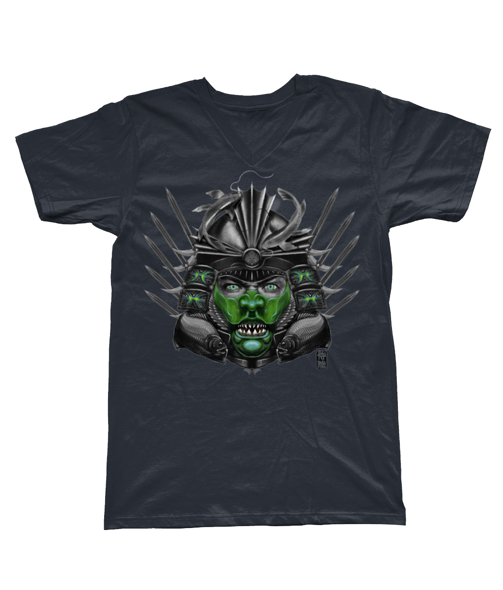 Pisces with Green Mask – V Neck Samurai T-Shirt