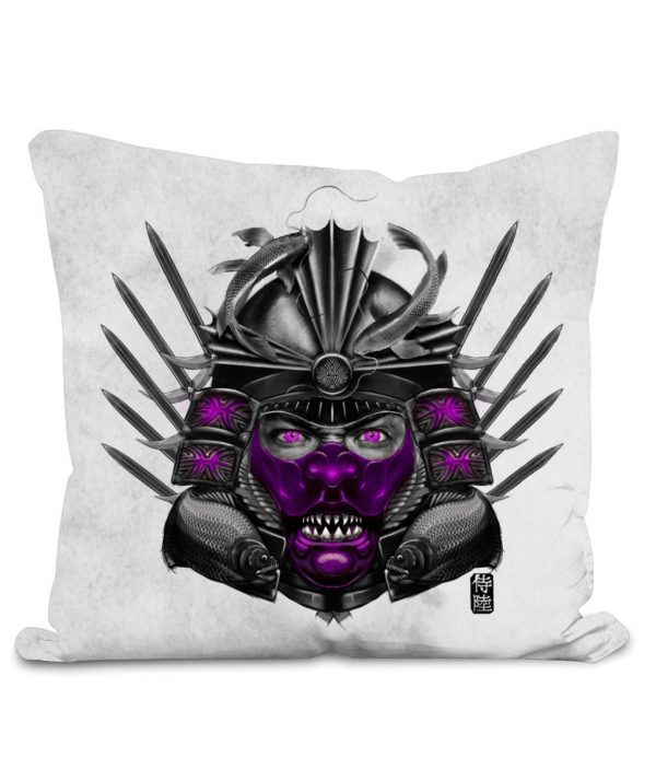 This throw cushion is part of our zodiac Samurai home décor collection. The design is printed on front and back of the pillow and available in 2 colors and 2 sizes. Featuring design of Pisces zodiac with Magenta mask. This Samurai cushion is sure to make your space awesome.