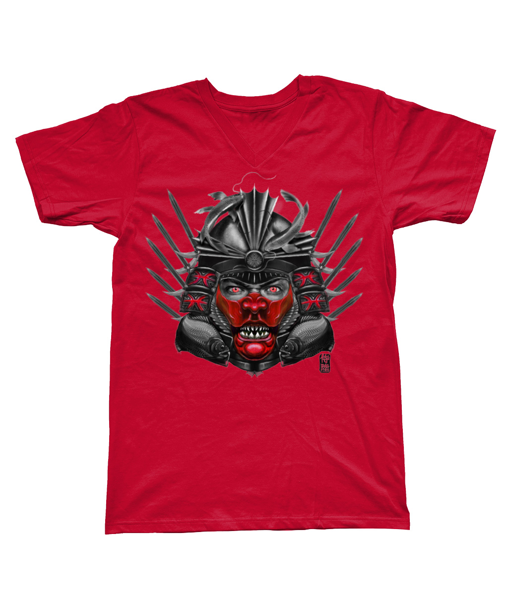 Pisces with Red Mask – V Neck Samurai T-Shirt