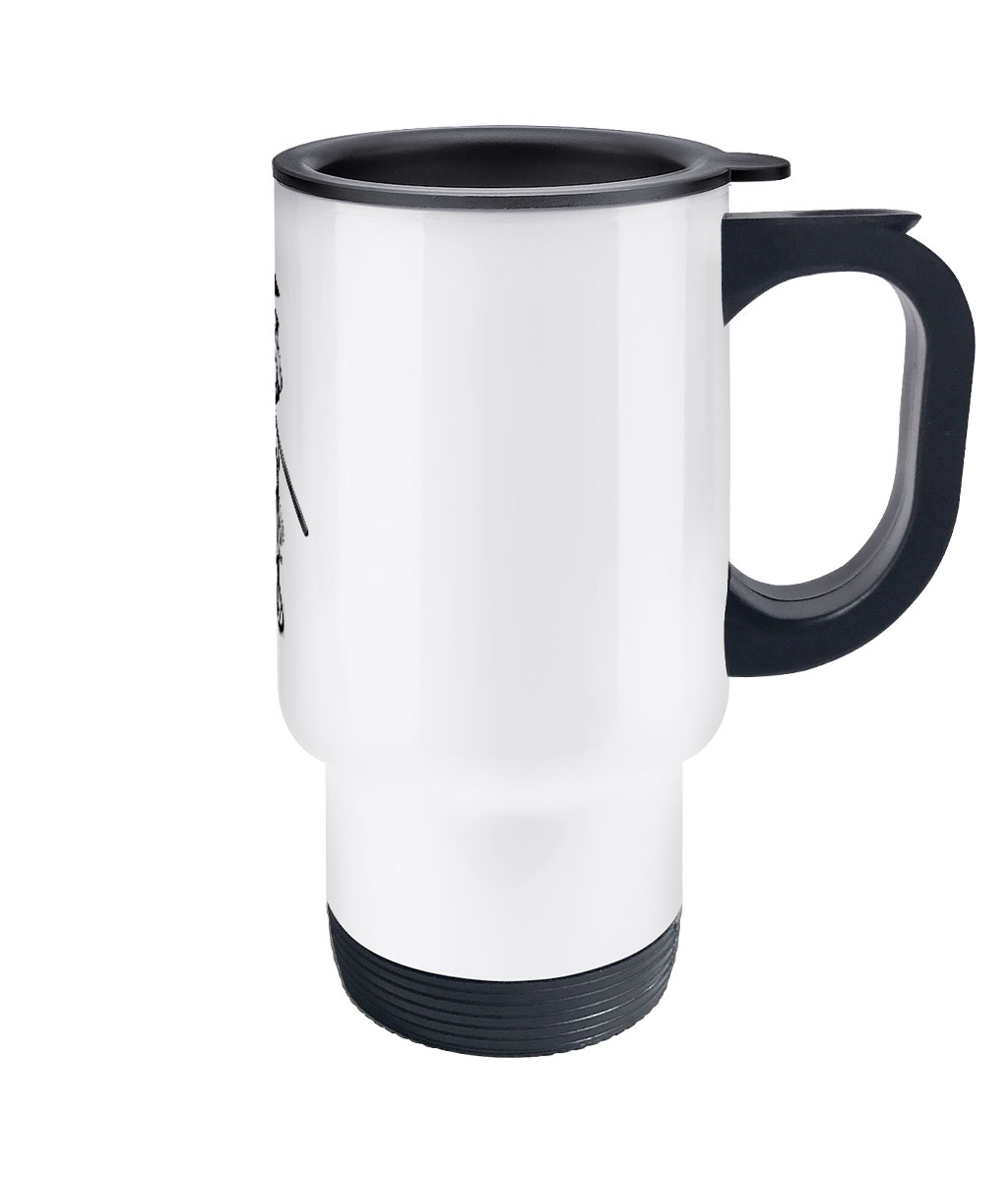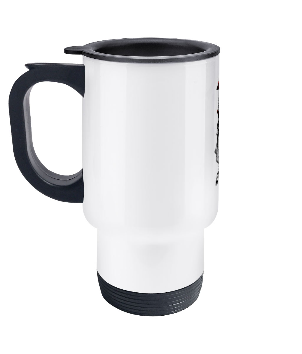 You are looking at 14oz stainless steel travel mug with Red Hat Samurai print, the travel mug has a matte white finish and will serve you perfectly on the go.
