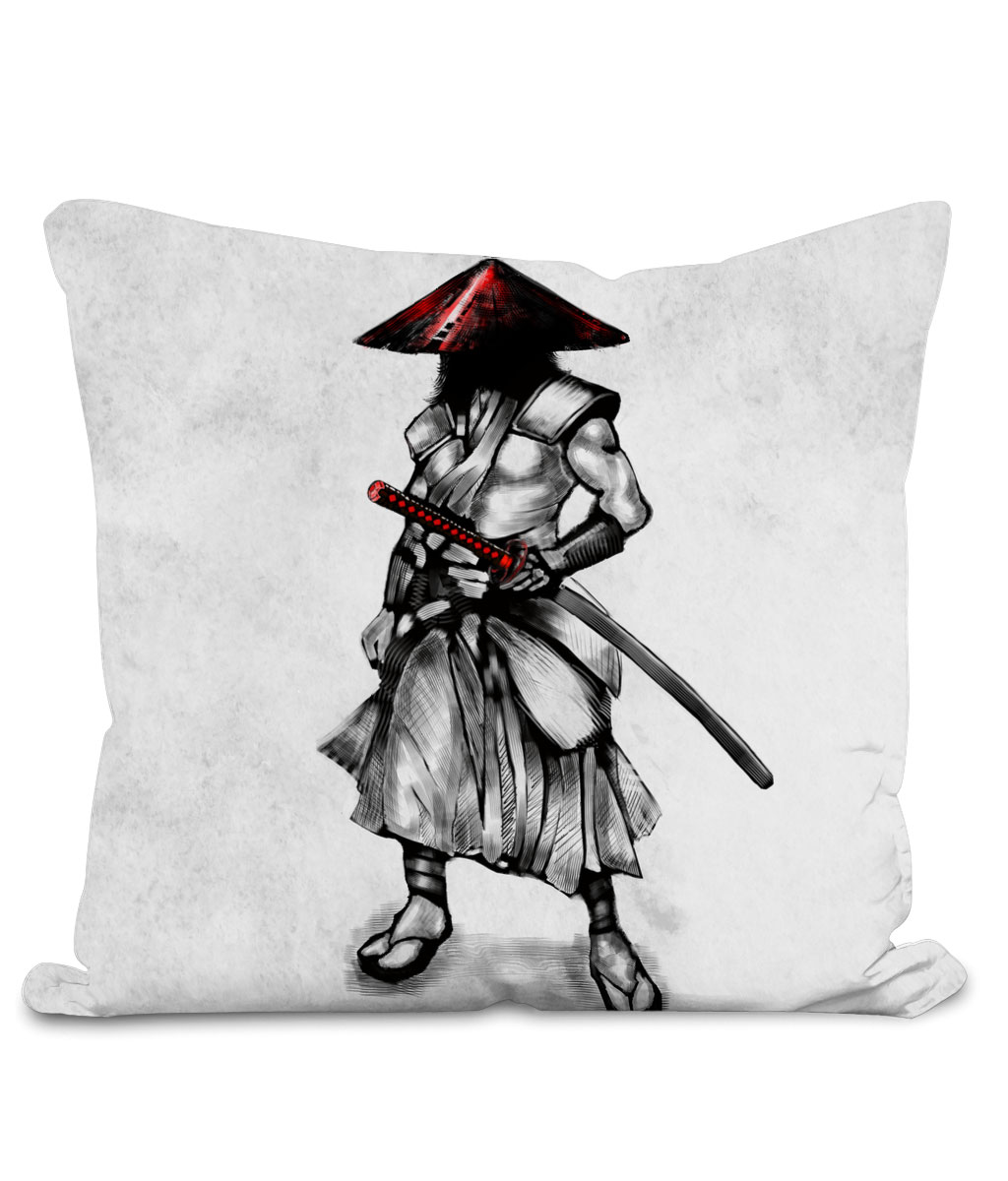 This throw cushion is part of our Samurai home décor collection. The design is printed on front and back of the pillow and available in 2 colors and 2 sizes. Featuring design of a Samurai with red hat and a Katana sword.