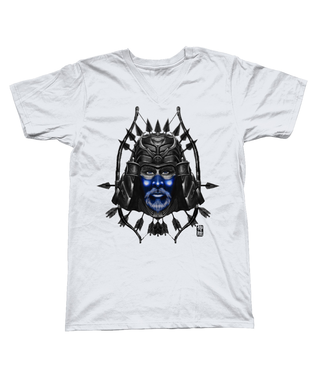 Sagittarius with Blue Mask – V Neck Samurai T-Shirt