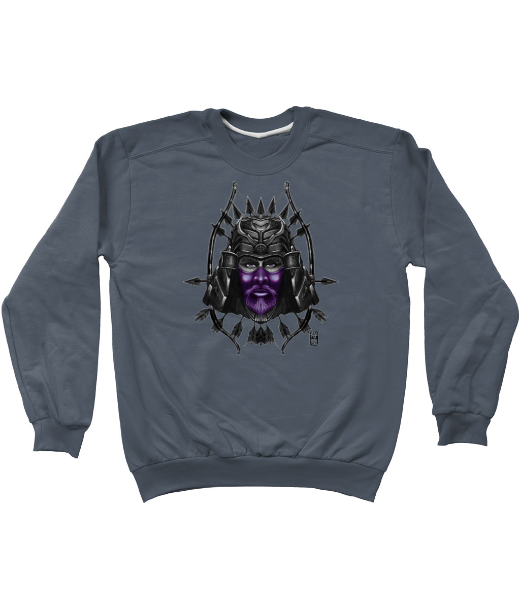 This Sweatshirt is part of our zodiac Samurai clothing collection, featuring Drop Shoulder Sweatshirt design of Sagittarius zodiac with Purple mask in Japanese Samurai art style. The Sagittarius sweatshirt is made to order and available in multiple colors for your convenience.