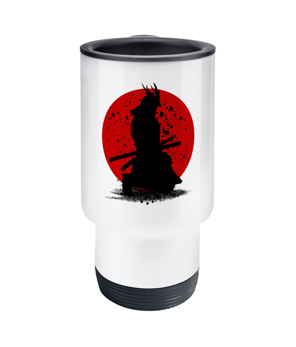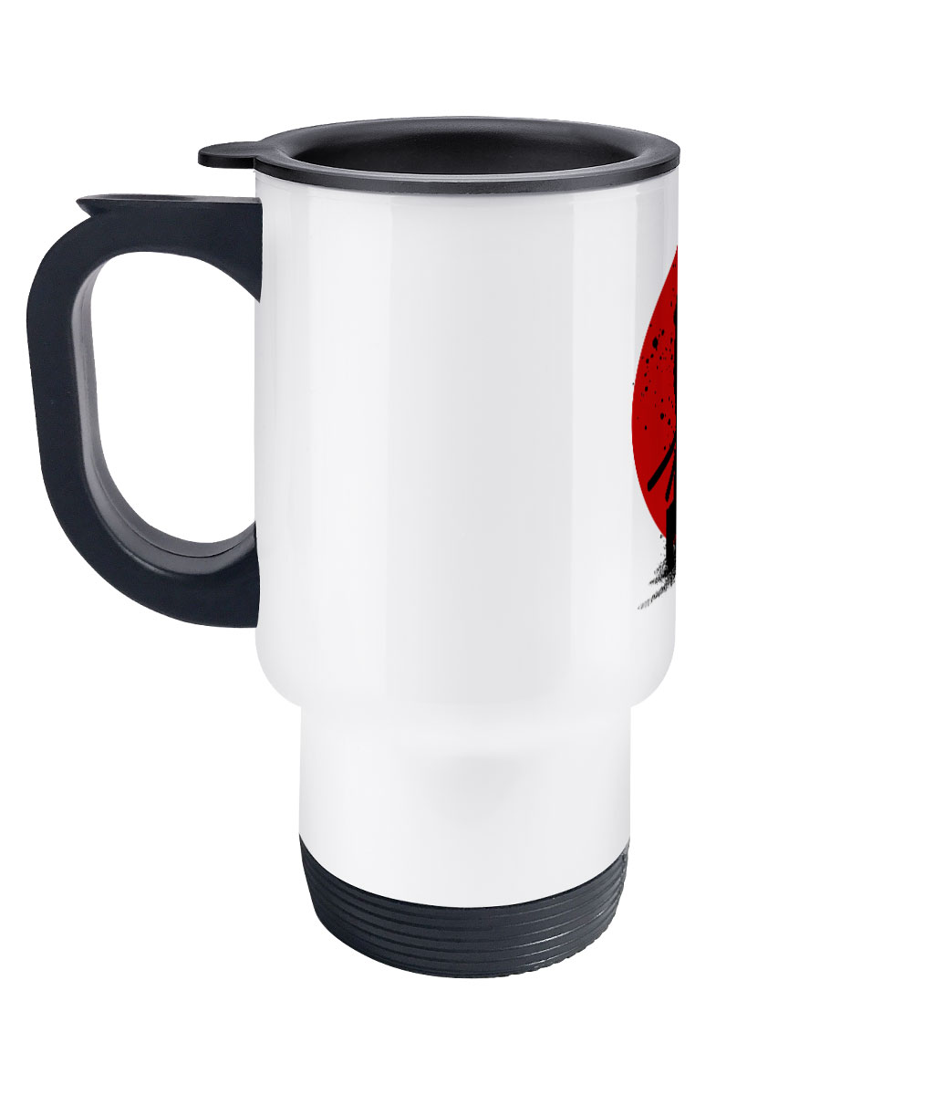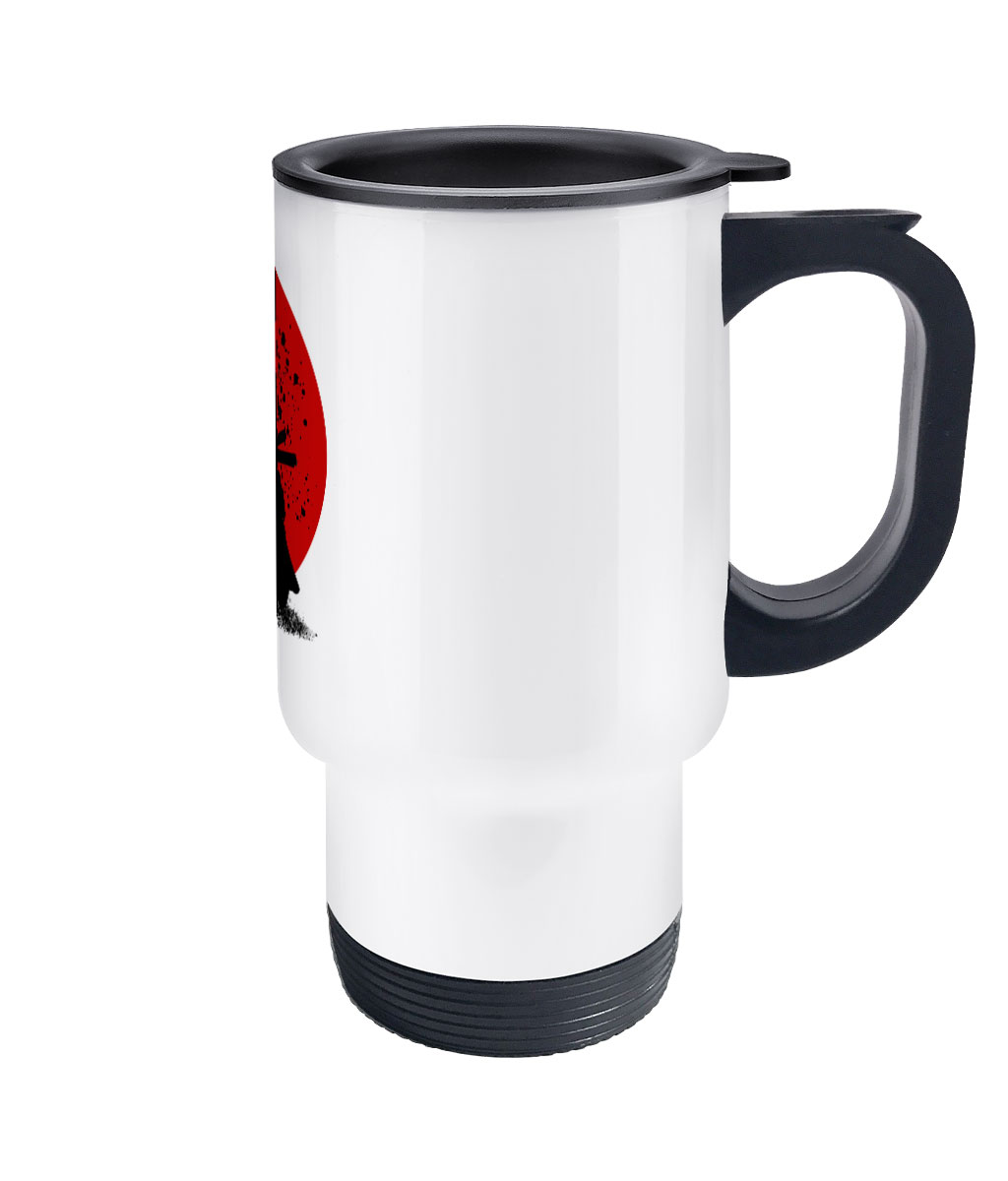 One of our best sellers, This stainless steel travel mug features a Samurai with Daisho against Japan rising sun, this mug has a matte white finish and will serve you perfectly at your home, office or on the go