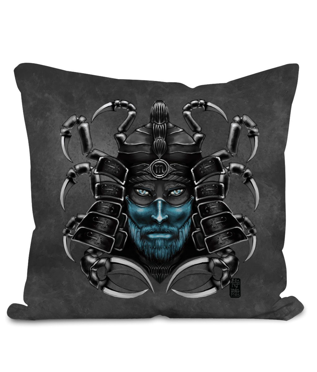 This throw cushion is part of our zodiac Samurai home décor collection. The design is printed on front and back of the pillow and available in 2 colors and 2 sizes. Featuring design of Scorpio zodiac with Blue mask. This Samurai cushion is sure to make your space awesome.