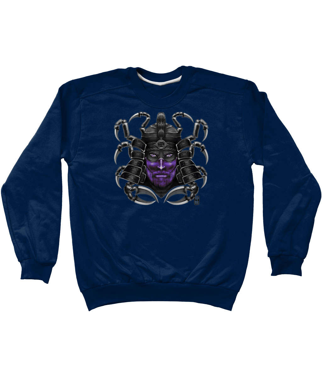 This Sweatshirt is part of our zodiac Samurai clothing collection, featuring Drop Shoulder Sweatshirt design of Scorpio zodiac with Purple mask in Japanese Samurai art style. The Scorpio sweatshirt is made to order and available in multiple colors for your convenience.