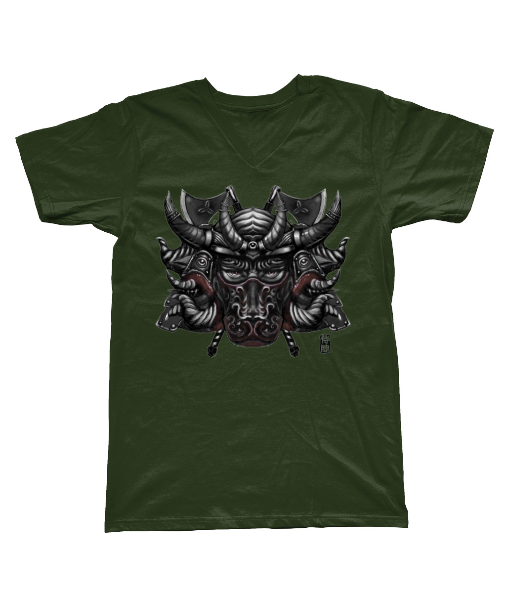 Taurus with Brown Mask – V Neck Samurai T-Shirt