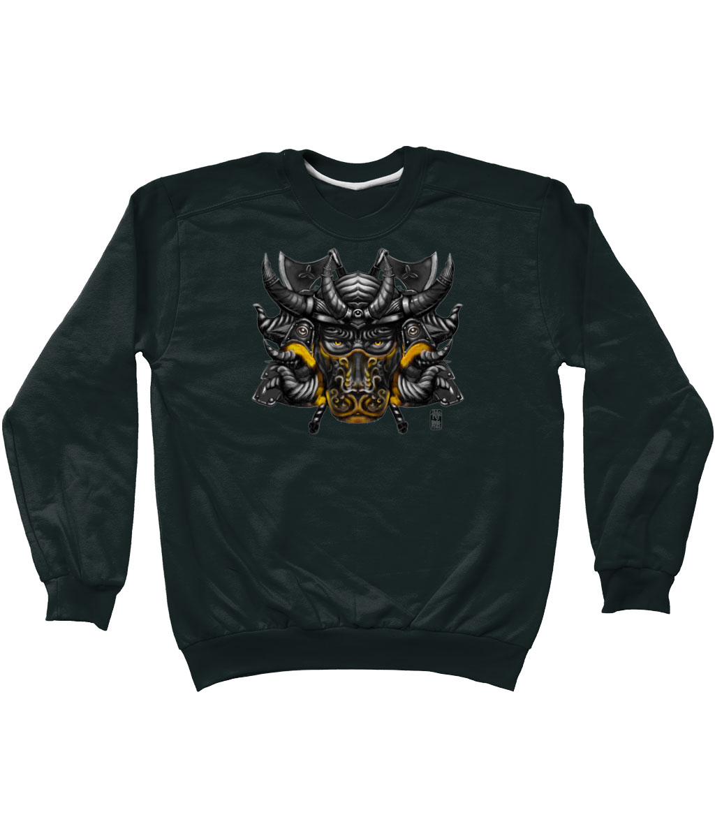 This Sweatshirt is part of our zodiac Samurai clothing collection, featuring Drop Shoulder Sweatshirt design of Taurus zodiac with Gold mask in Japanese Samurai art style. The Taurus sweatshirt is made to order and available in multiple colors for your convenience.