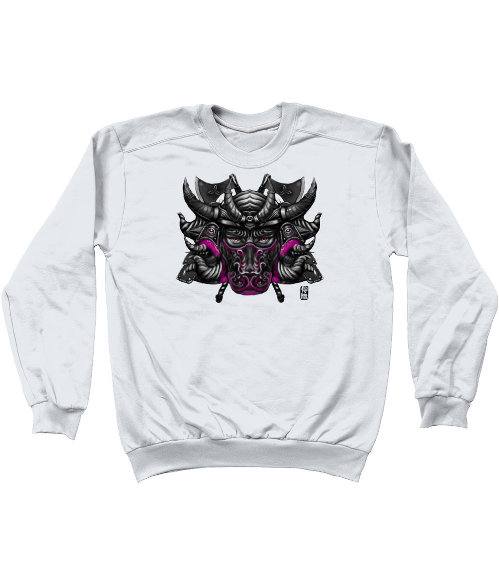 This Sweatshirt is part of our zodiac Samurai clothing collection, featuring Drop Shoulder Sweatshirt design of Taurus zodiac with Magenta mask in Japanese Samurai art style. The Taurus sweatshirt is made to order and available in multiple colors for your convenience.