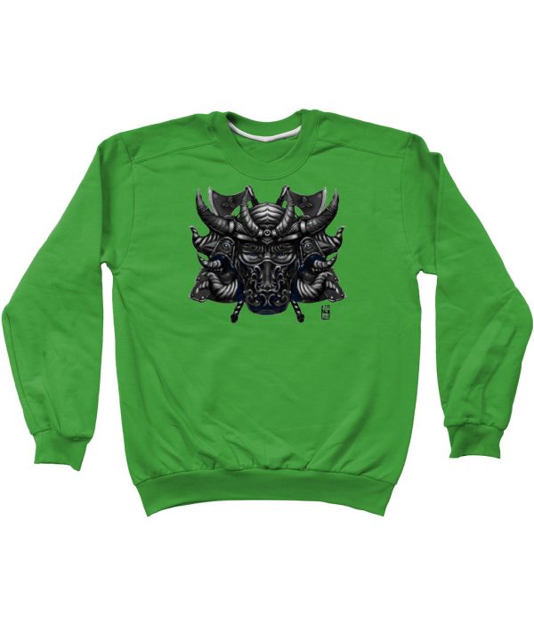 This Sweatshirt is part of our zodiac Samurai clothing collection, featuring Drop Shoulder Sweatshirt design of Taurus zodiac with Silver mask in Japanese Samurai art style. The Taurus sweatshirt is made to order and available in multiple colors for your convenience.