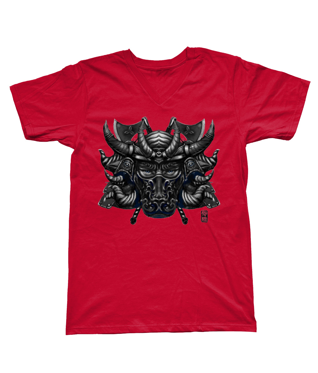 Taurus with Silver Mask – V Neck Samurai T-Shirt