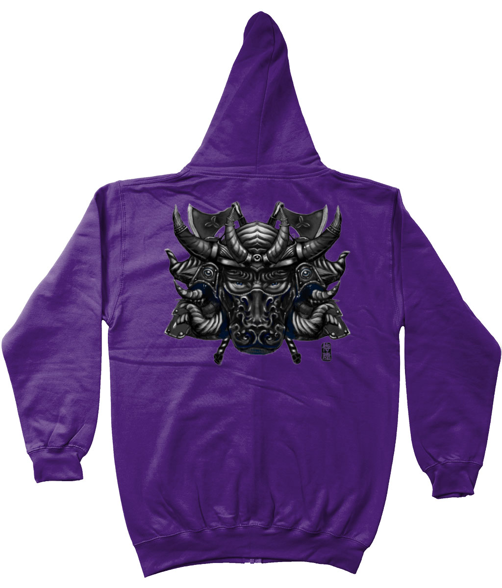 This hoodie with zipper is part of our zodiac Samurai clothing collection, featuring back printed design of Taurus zodiac with Silver mask in Japanese Samurai art style. This zipper hoodie is made to order and available in multiple colors for your convenience.