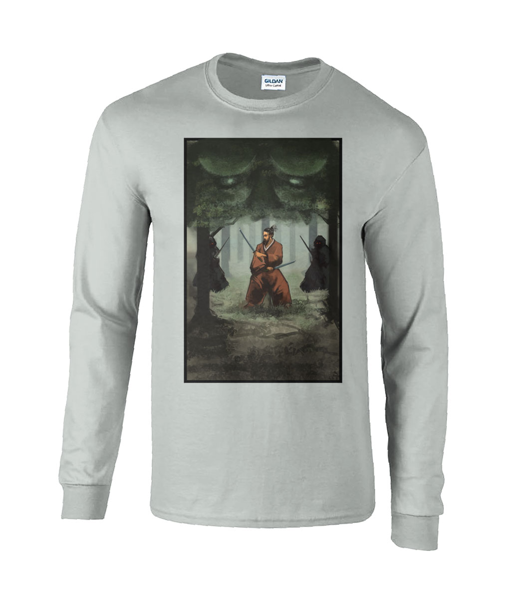You never know when a ninja is going to attack. Be always ready with this strikingly designed shirt with the airs of an old Japanese painting, featuring a samurai being ambushed by unknown warriors. Never let them caught you off guard!