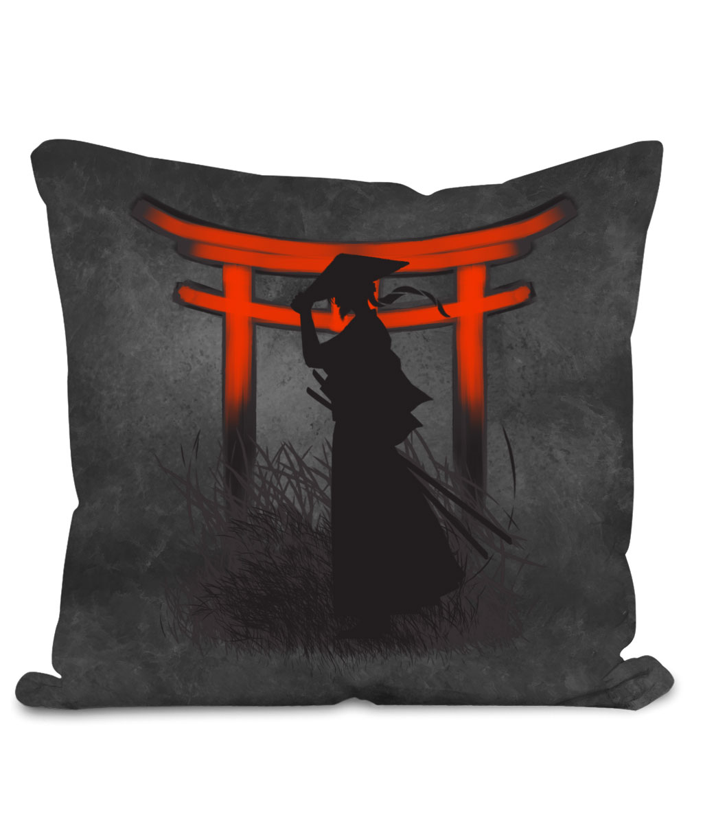 This throw cushion is part of our Samurai home décor collection. The design is printed on front and back of the pillow and available in 2 colors and 2 sizes. Featuring a beautiful design of a Samurai standing next to a Tori gate. This awesome pillow is one of our best sellers and can fit great in any environment.