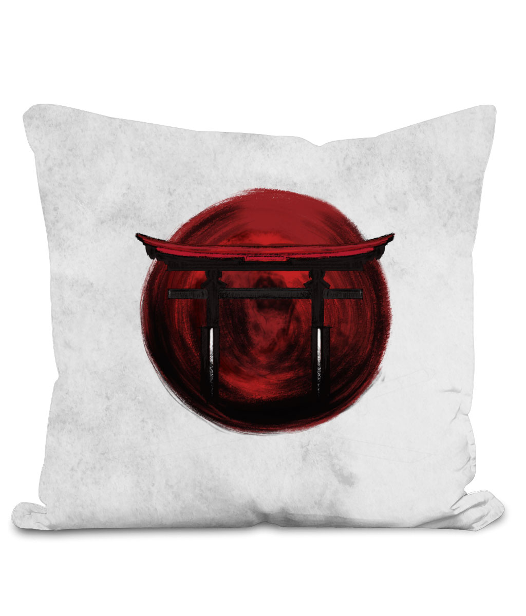 This throw cushion is part of our Samurai home décor collection. The design is printed on front and back of the pillow and available in 2 colors and 2 sizes. Featuring design of a Tori gate in dark red colors, this pillow is perfect for any modern space environment.