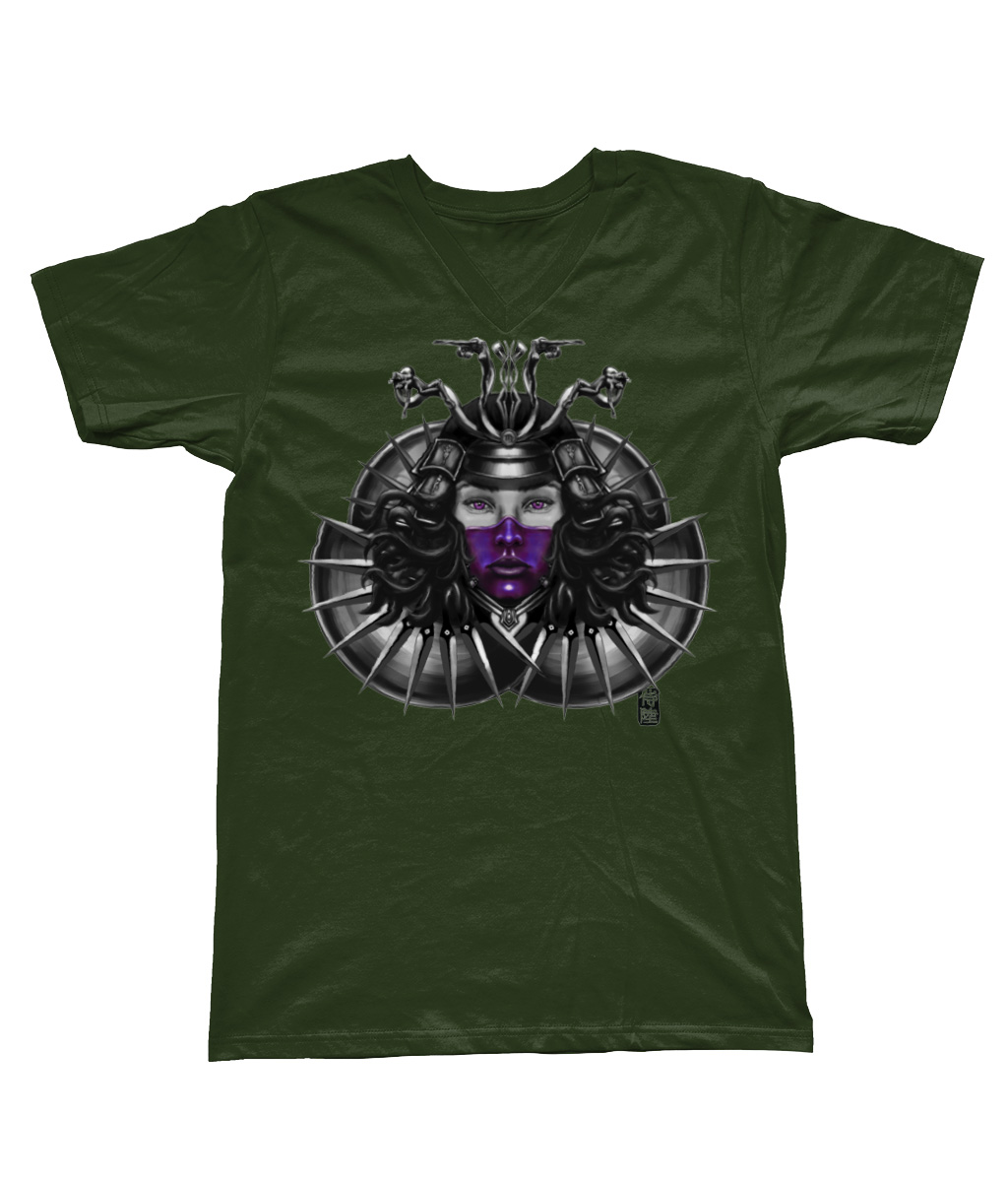 Virgo with Purple Mask – V Neck Samurai T-Shirt