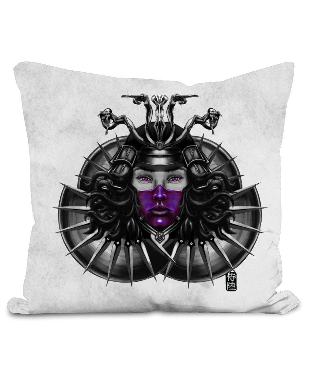 This throw cushion is part of our zodiac Samurai home décor collection. The design is printed on front and back of the pillow and available in 2 colors and 2 sizes. Featuring design of Virgo zodiac with Purple mask. This Samurai cushion is sure to make your space awesome.