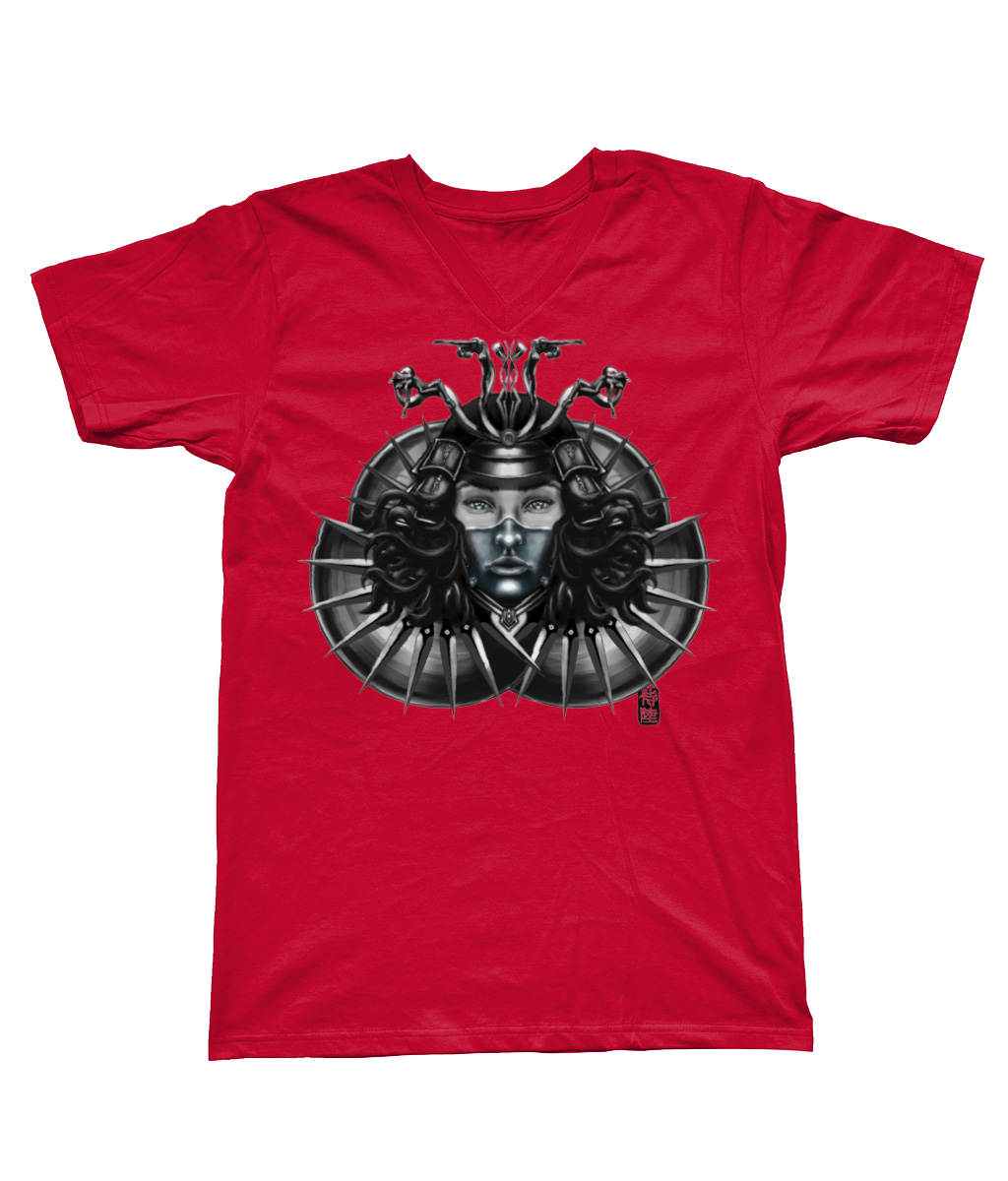 Virgo with Silver Mask – V Neck Samurai T-Shirt